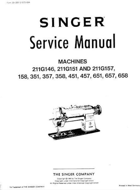 Singer Sewing Machine Service Manual (Models 211G146, Etc.)