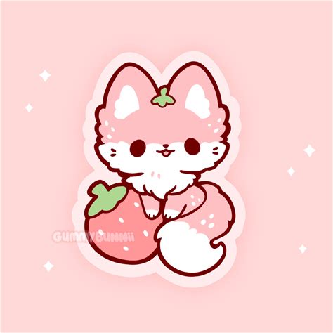 Kawaii Strawberry Fox Matte Vinyl Sticker Stickers For Strawberry Lovers Cute Small Gift Decal Cut Vinyl Sticker
