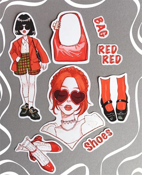 Cute And Beautiful Vinyl Stickers/ Sticker Set/ For Gift/ Stickers For Laptop/ Stickers For Scrapbooking/ Stickers For Girls/ Girl In Red