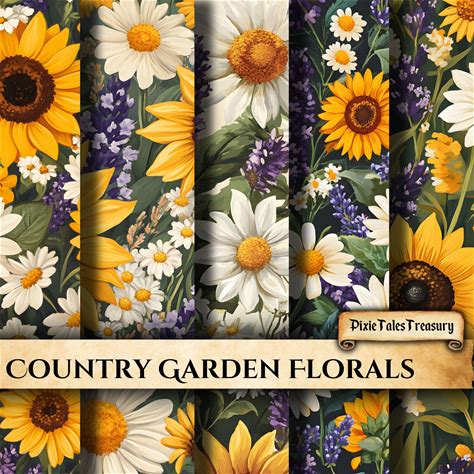 Country Garden Floral Paper, Rustic Sunflower Daisy Scrapbook Junk Journal Paper, Farmhouse Floral Craft Supplies, Decoupage Background