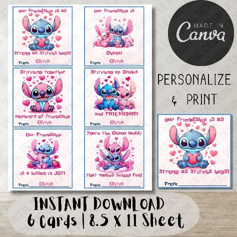 Blue Alien Valentine Png Bundle: Stit-ch and Li-lo, Xoxo (digital Dow