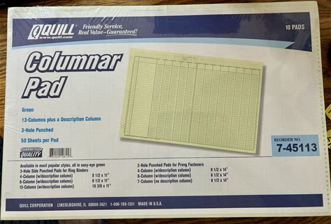 10 Quill Columnar Pads 13 Columns For 3 Ring Binders 7-45113 50 Pages Each Seale