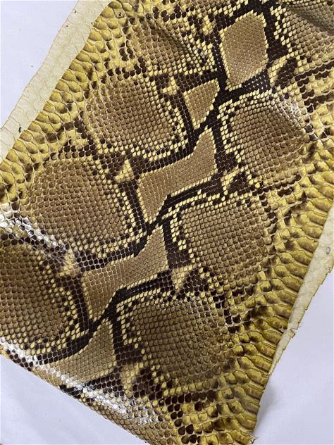 Real Snake Leather, Genuine Python Snakeskin Long And Wide Of Thick 0,8mm 2 Oz. Yellow. Leather Hides & Fur Pelts.