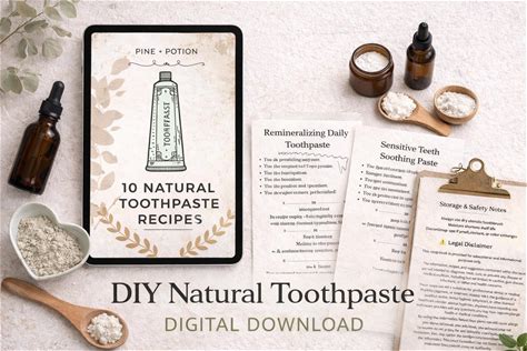 DIY Natural Toothpaste Recipes | Non - Toxic Oral Care Guide | Remineralizing + Whitening | Digital Download | Pine + Potion