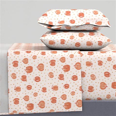 Orange Pumpkins Sheets - Pumpkins By Kriswongdesign - Autumn Halloween Thanksgiving Pumpkins Cotton Sateen Sheet Set Bedding By Spoonflower