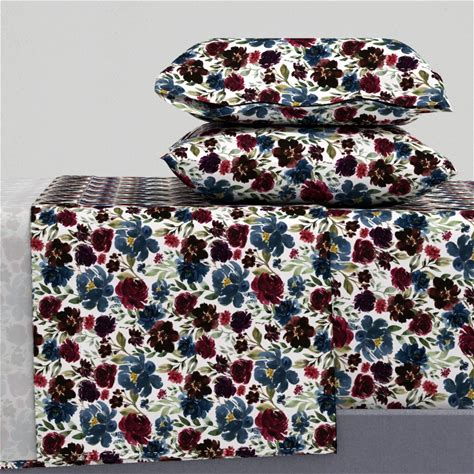 Bold Fall Floral Sheets - Scarlet Floral By Hipkiddesigns - Autumn Botanical Jewel Tones Cotton Sateen Sheet Set Bedding By Spoonflower