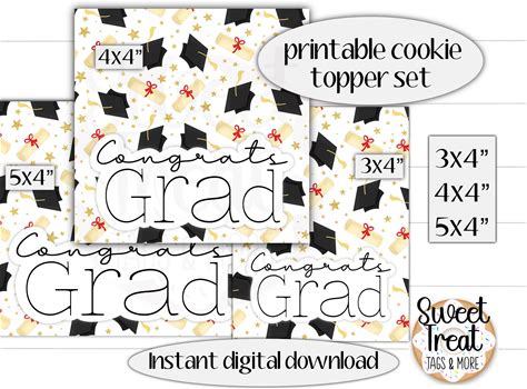Printable Graduation Cookie And Treat Topper Set - 3X4" 4X4" 5X4" Congrats Grad - Graduation Treat Topper Set - Graduation Cookie Toppers