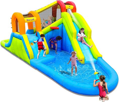 BOUNTECH Inflatable Water Slide, 14 x13ft Kids Mega Waterslide Park W/Super Long Slide For Racing Fun, Ball Pit Ring-Toss, Splash Pool, Blow Up Water Slides For Big Kids Outdoor Backyard Party Gifts