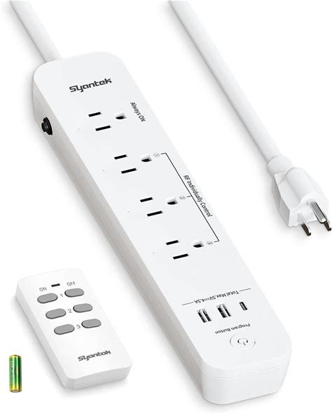 Remote Control Power Strip With 3USB 2 A And 1 -C 3 RF Controlled Outlets 5 F. Syantek. Power Strips & Surge Protectors.